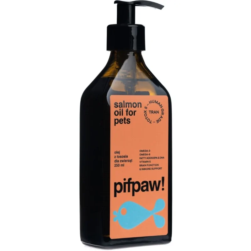 Olej z łososia Pifpaw dostarcza kwasów Omega-3, które mogą wspierać układ odpornościowy psów i kotów. Dzięki temu Twój czworonożny przyjaciel może lepiej radzić sobie z codziennymi wyzwaniami, od zabaw na dworze po potyczki ze zwierzętami sąsiadów. To naturalny sposób na utrzymanie witalności i energii Twojego pupila.